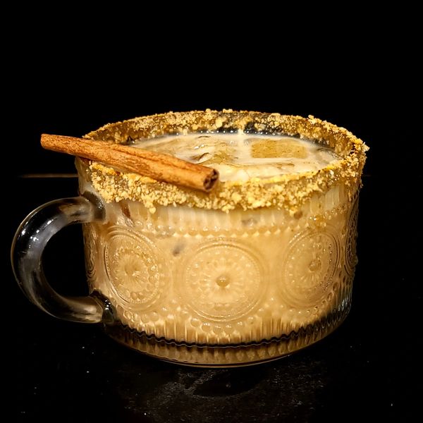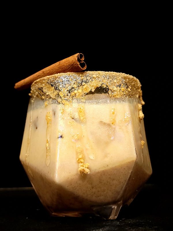 Handcrafted Pumpkin pie mix, Brown sugar, pumpkin puree, None dairy milk, dark spiced rum, vanilla vodka and graham cracker.